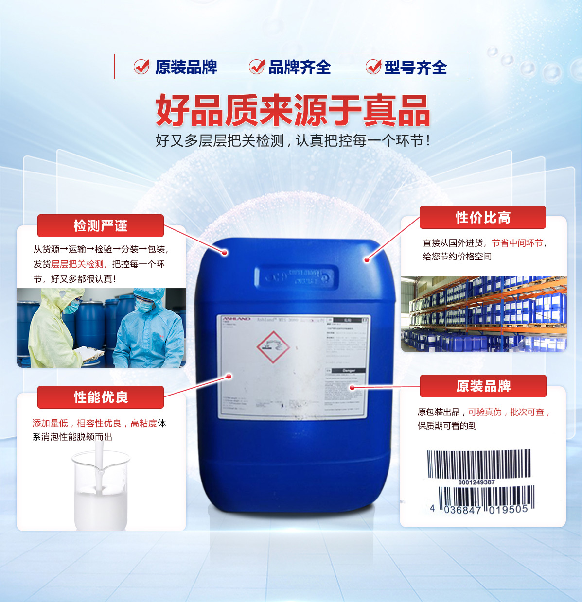| 垃圾滲濾液消泡劑 | 耐高溫性、耐強(qiáng)酸堿性好,消泡分散穩(wěn)定性較強(qiáng) | 美國(guó) | 20KG桶裝 | 24個(gè)月 |