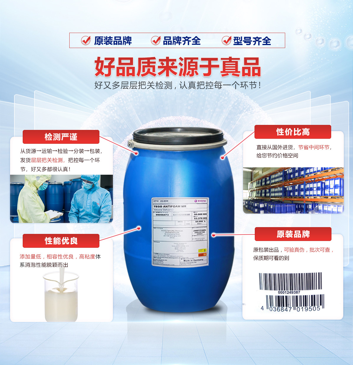 | 光油消泡劑 | 其稀釋液有很好的堿和電解質(zhì)穩(wěn)定性,甚至在高溫下也很穩(wěn)定。 | 德國 | 30KG/60KG桶裝 | 24個月 |