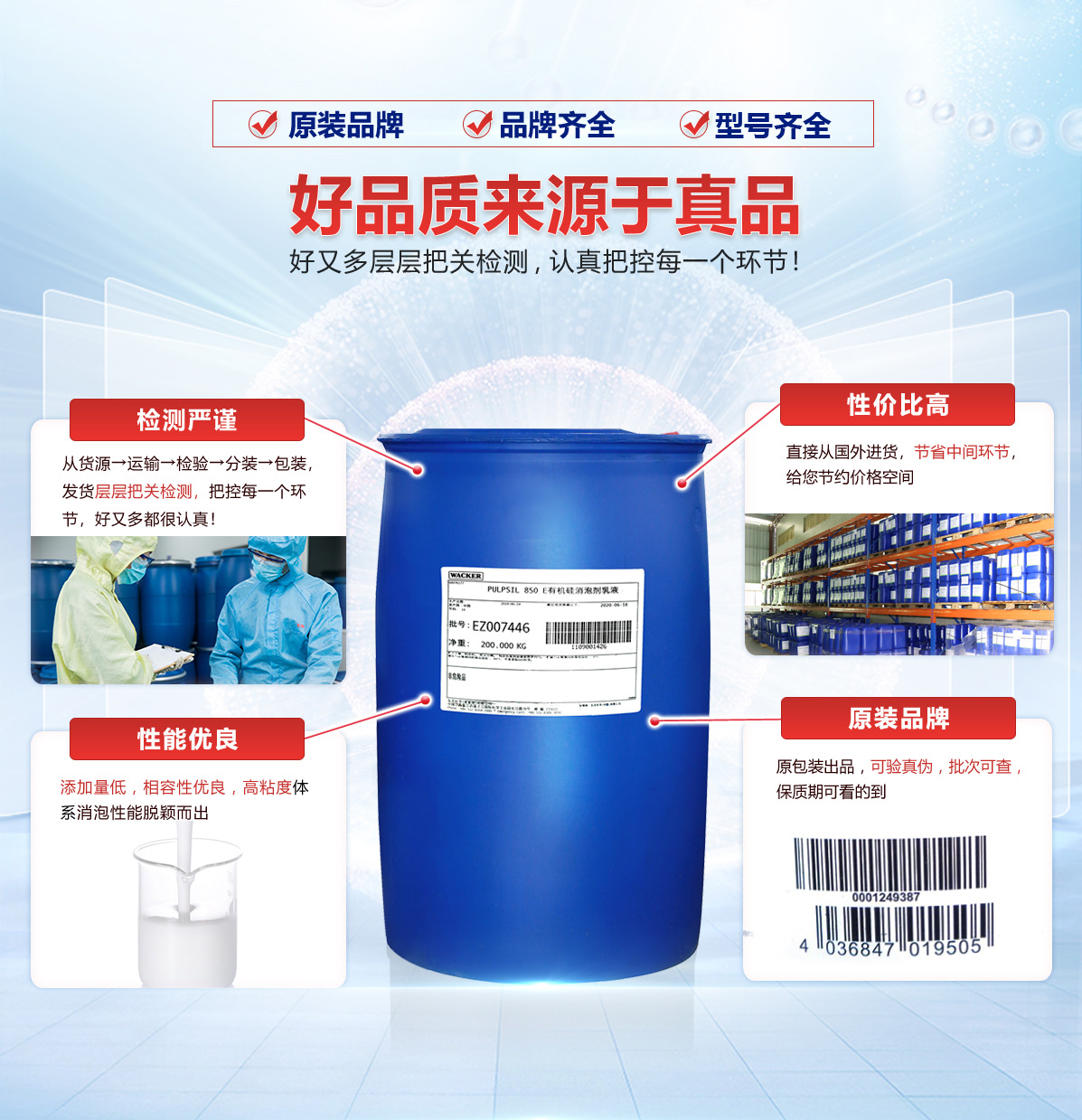產品特點:有機硅消泡乳液,固含量高,適用于水性體系。用于食品、發(fā)酵、藥品行業(yè)。