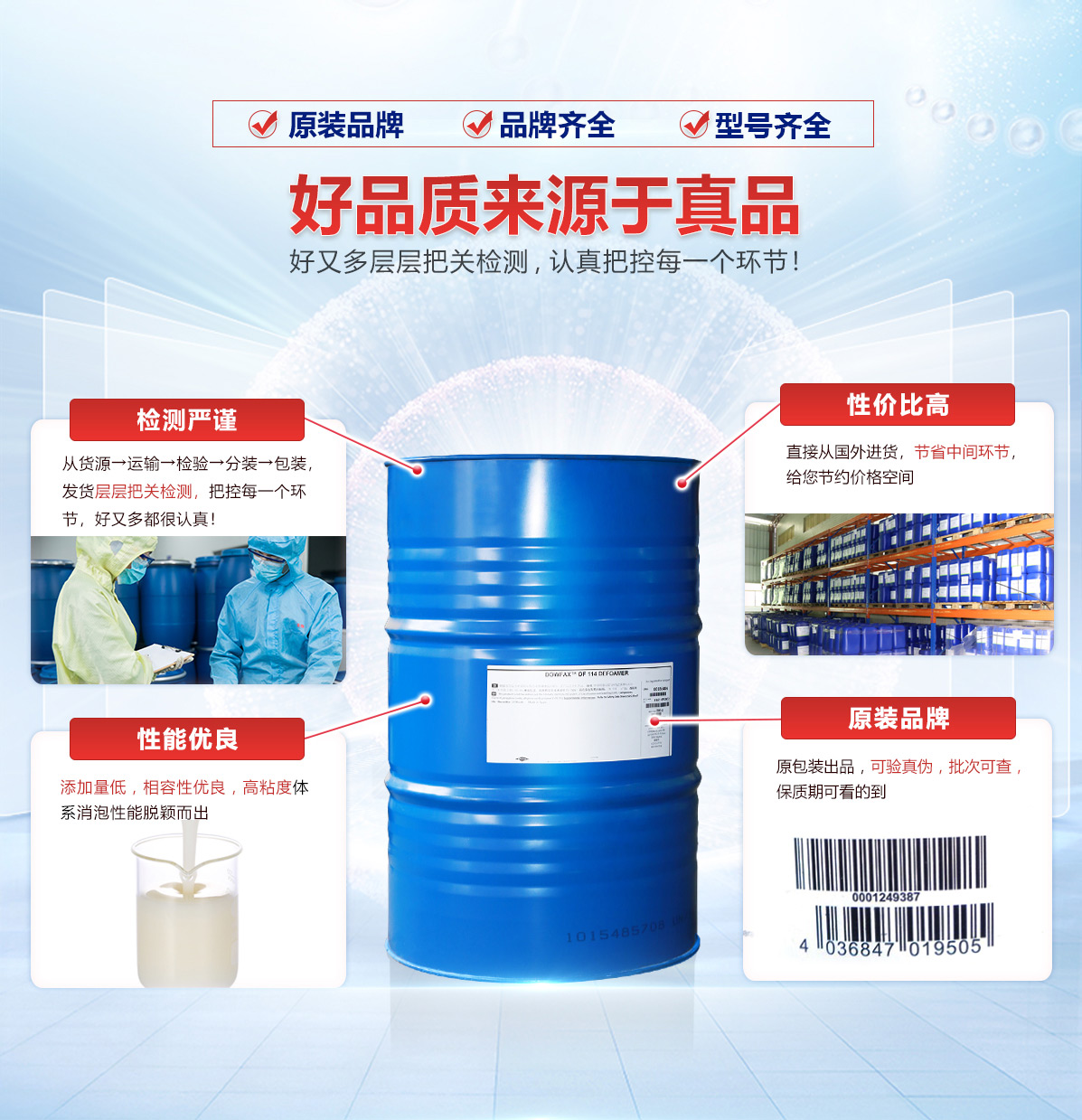 ? 產(chǎn)品名稱(chēng):線(xiàn)路板pcb消泡劑 ? 品牌產(chǎn)地:美國(guó) ? 成分:嵌段型聚醚類(lèi)物質(zhì) ? 功能:線(xiàn)路板清洗消泡劑 ? 基本信息:美國(guó)陶氏化學(xué)生產(chǎn)的DF-114是一種非離子表面活性劑,屬于嵌段型聚醚類(lèi)物質(zhì)。 購(gòu)買(mǎi)承諾:原裝海外品牌 可試驗(yàn)驗(yàn)證真?zhèn)?,有?zhuān)業(yè)技術(shù)團(tuán)隊(duì)解決消泡問(wèn)題